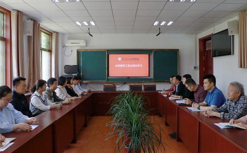 在会议室组织全体教职工开展政治理论学习,万博体育