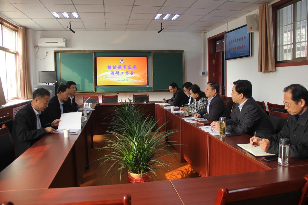 班子全体成员、院党政办主任、自考与培训部长参加调研会。