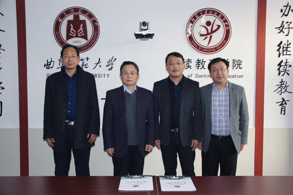 与济南现代职业技能培训中心签订非学历继续教育合作协议共同开展计算机等级考试辅导培训,院长马秀峰、副院长邢春雷、自考培训部部长杨来舜,济南现代职业技能培训中心校长吴天栋参加签约仪式。