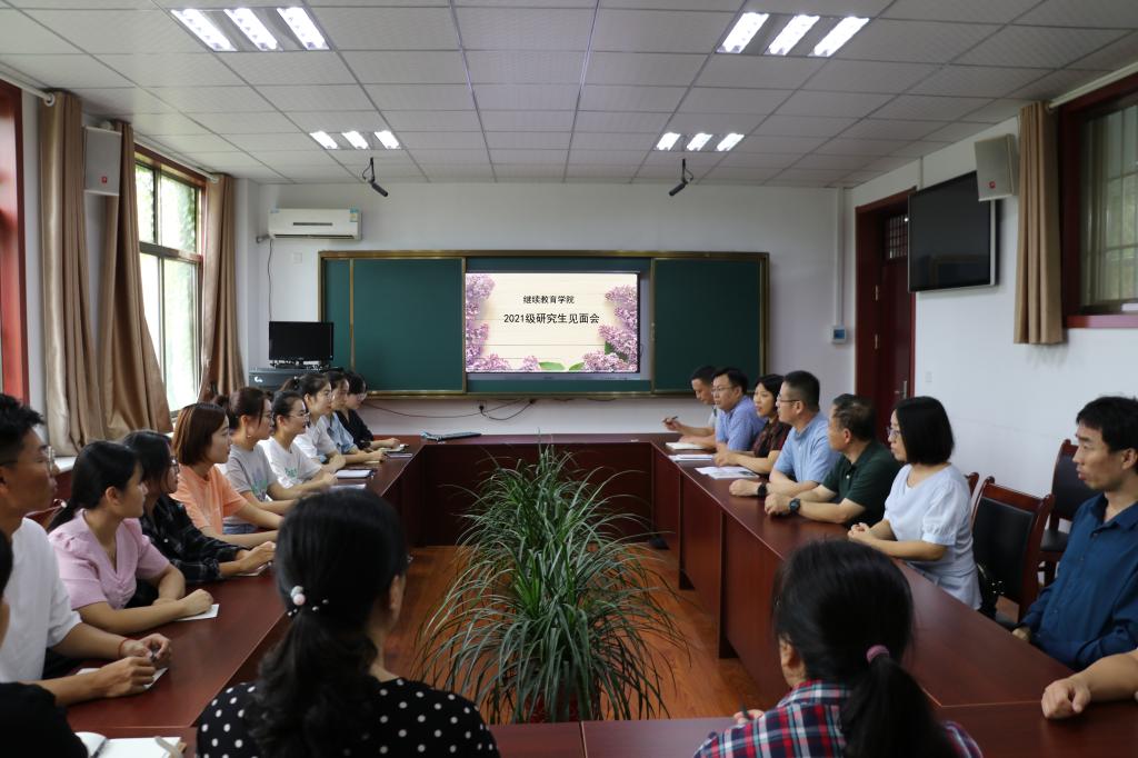各部门负责人以及2021级研究生参加会议,会议由职业与继续教育研究院院长何爱霞教授主持。