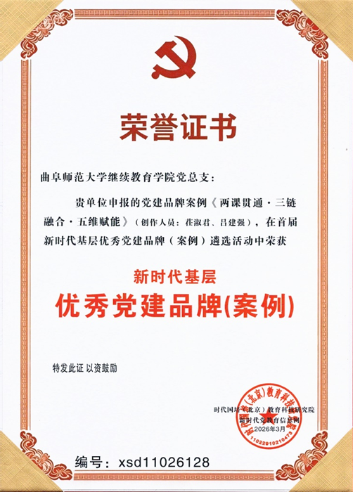 报送的党建工作案例《两课贯通•三链融合•五维赋能》(创作人员:茌淑君、吕建强)凭借鲜明的特色、扎实的举措和显著的成效,在31246个参赛案例中脱颖而出,荣获新时代基层优秀党建品牌(案例),充分展现了万博体育