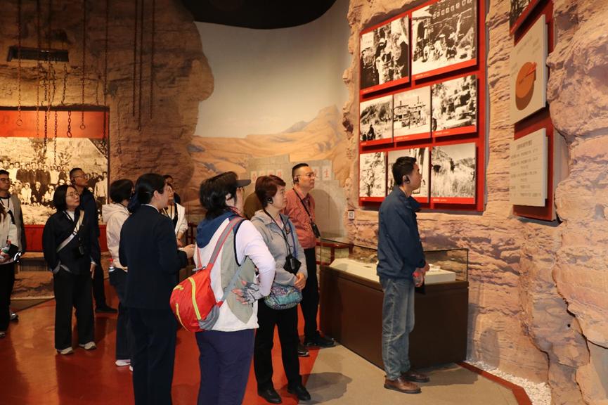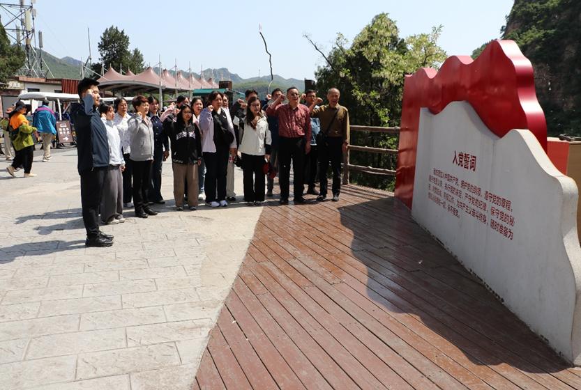 党员同志们循着习近平总书记的足迹,先后走进红旗渠纪念馆和分水闸、青年洞等标志性工程现场,沉浸式感悟“人工天河”的建设奇迹与精神内涵。在红旗渠纪念馆内,一幅幅泛黄的历史照片、一件件斑驳的修渠工具,生动再现了当年林县人民战天斗地、劈山引漳的峥嵘岁月,使大家深刻领悟了“自力更生、艰苦创业、团结协作、无私奉献”的红旗渠精神内核,明晰了“为谁创造政绩、创造什么样的政绩、怎样创造政绩”的时代命题,校准了为民造福的正确政绩观。行至被誉为红旗渠咽喉工程的青年洞,绝壁上的凿痕历历可见,修渠青年不畏艰险、勇挑重担的故事感人至深,大家驻足观看凌空除险实景表演,真切体悟“重新安排林县河山” 的豪迈壮志。在青年洞前,全体党员整齐列队,面向鲜红党旗庄严宣誓,重温入党誓词,铿锵誓言回荡山谷,传递出赓续红色血脉、砥砺初心使命的坚定信念。