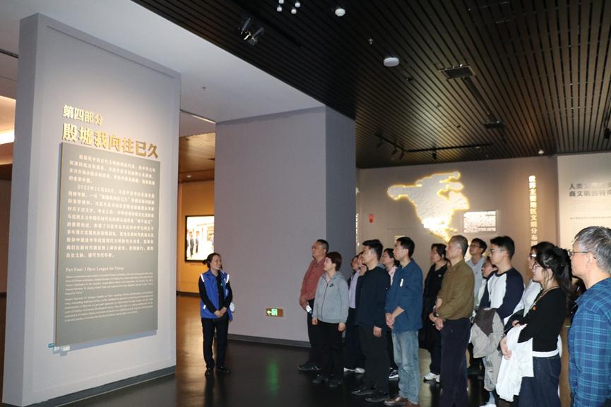 学习期间,师生们还参观了殷墟博物馆,探寻中华文明根脉。馆内一件件珍贵文物、一幅幅历史图景,系统展现了商代文明的灿烂成就,让大家深刻感悟甲骨文作为中华优秀传统文化根脉的独特魅力,进一步增强了传承弘扬中华优秀传统文化、建设中华民族现代文明的责任感与使命感。
