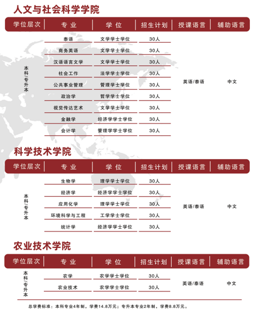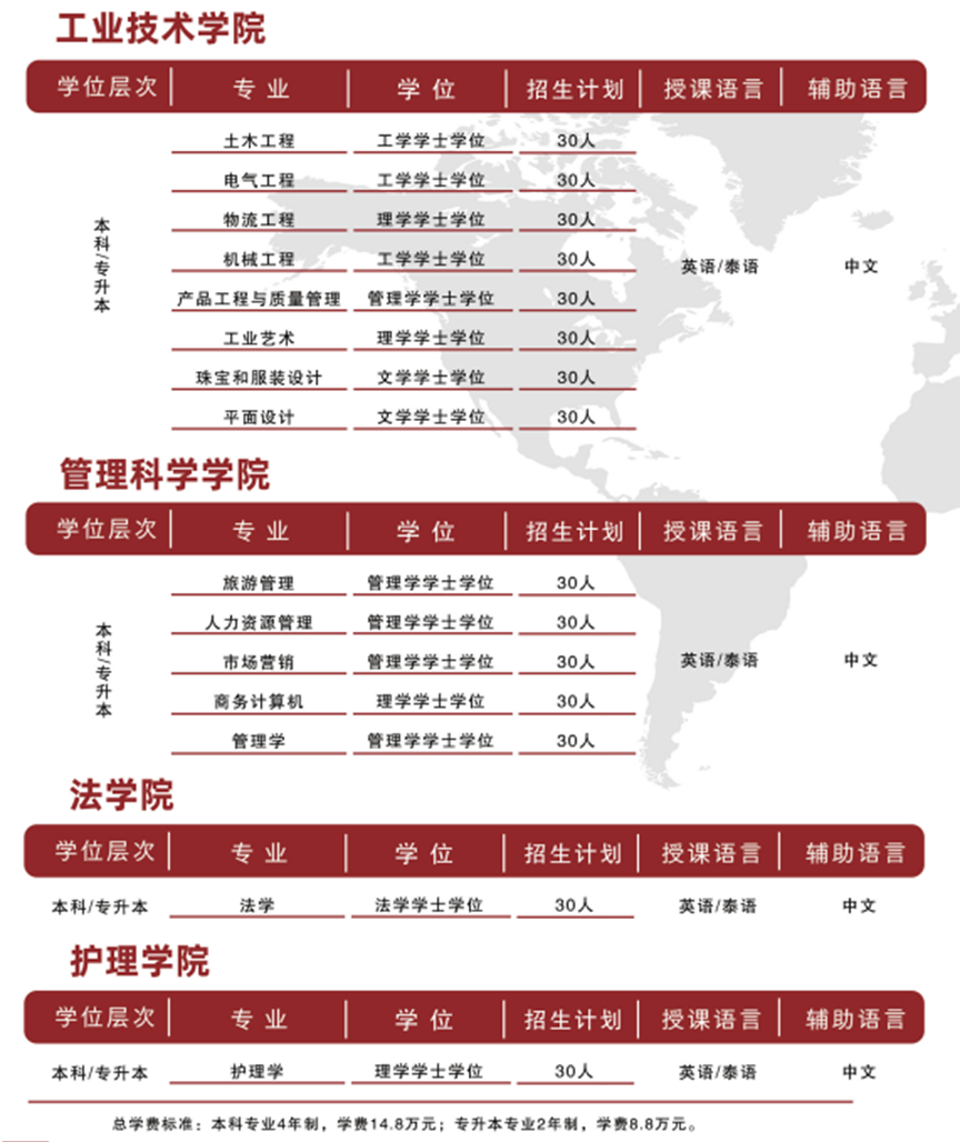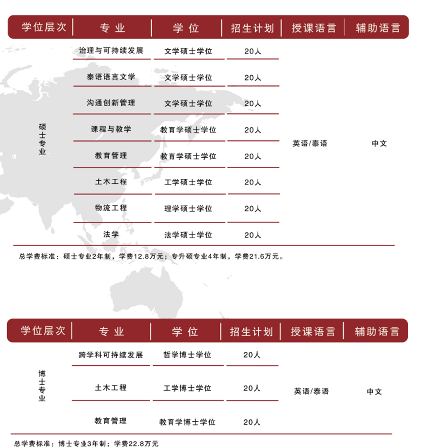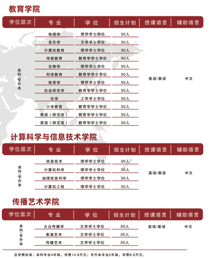 现发布2024年泰国留学项目招生通告,面向不同学历层次的学生开设60余个留学专业,有关具体事项公告如下: