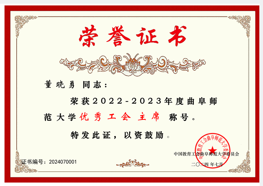 分工会2022—2023年度工会工作“先进集体”称号、授予董晓勇同志“优秀工会主席”称号、授予王岩同志“优秀工会积极分子”称号。这一殊荣不仅是对万博体育