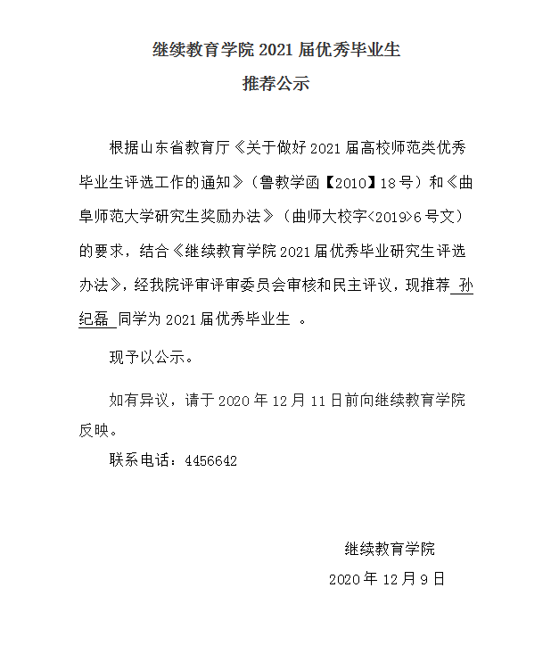 上一条:万博体育 2020年度山东省高等万博体育 优秀学生、干部初选人员公示 下一条:2020年研究生学业奖学金评选公示