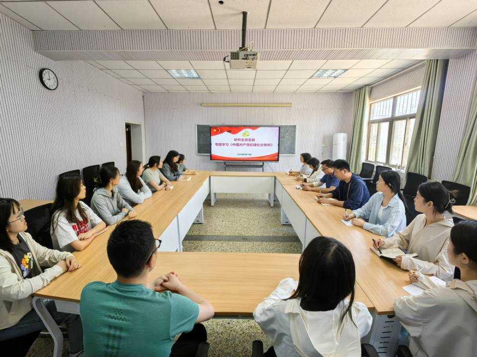 为深入贯彻落实全面从严治党要求,引导学生党员牢固树立党规党纪意识,推动党纪学习教育在支部走深走实。5月15日上午,研究生党支部在8号楼201会议室组织开展《中国共产党纪律处分条例》(以下简称《条例》)专题学习活动。会议由党支部书记吕建强主持,全体党员、预备党员和入党积极分子参加。