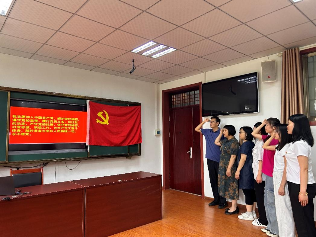 活动七是“重温入党誓词”。在教师党员的带领下,研究生党员面对中国共产党党旗一起重温入党誓词。通过这一活动,提醒每一位党员要不忘初心,坚定理想信念。