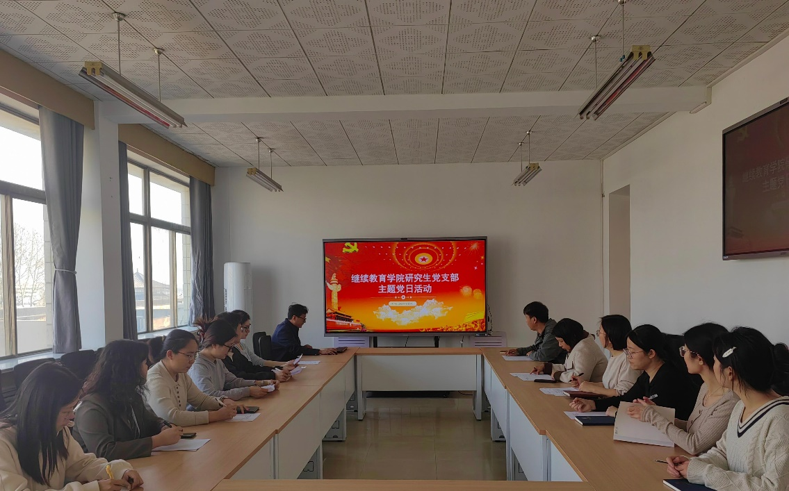 研究生党支部在504会议室开展主题党日活动,专题学习“两会”精神与《教育强国建设规划纲要(2024-2035)》。学习活动由党支部书记吕建强主持,支部全体党员参加。