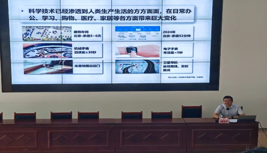 副院长刘宝杰教授以《把握当今世界科技发展形势推动实现我国科技高水平自立自强》为题,从科技创新推动大国崛起的历史经验、科技支撑我国现代化建设的脉络、高水平科技自立自强的战略支撑以及青年的使命担当四个方面,系统阐述了科技创新与大国崛起的关系,深入剖析了我国科技自立自强的路径。讲座内容深刻、案例丰富,深受师生好评。